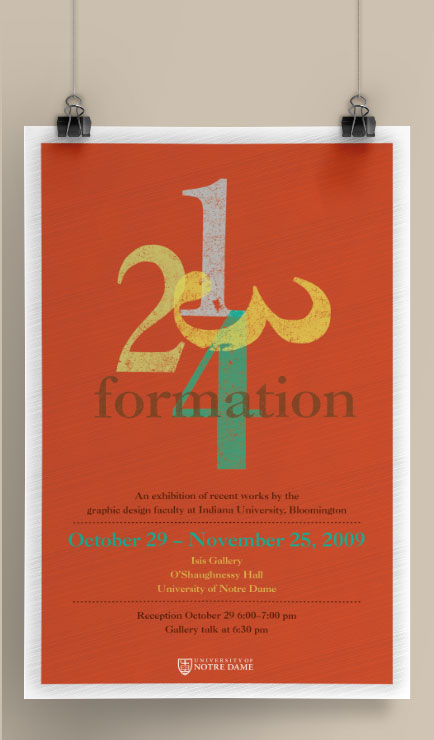 Poster advertising the Indiana University printmaking faculty show at the Isis Gallery on the University of Notre Dame's campus
