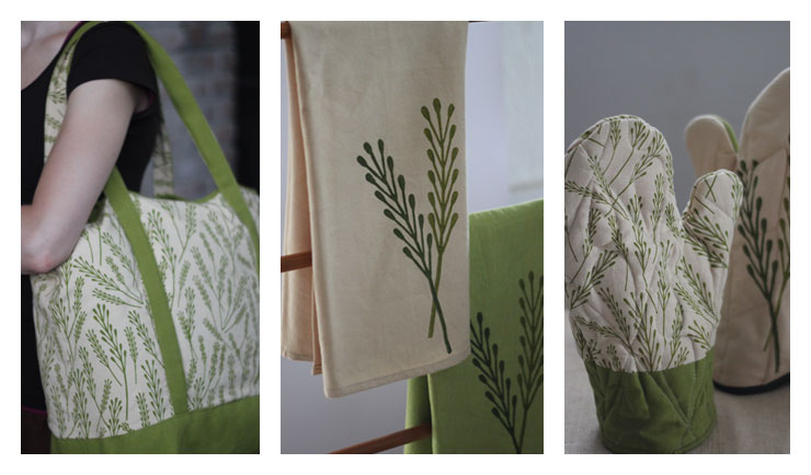 Design for tea towels, oven mitts, and tote bag