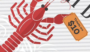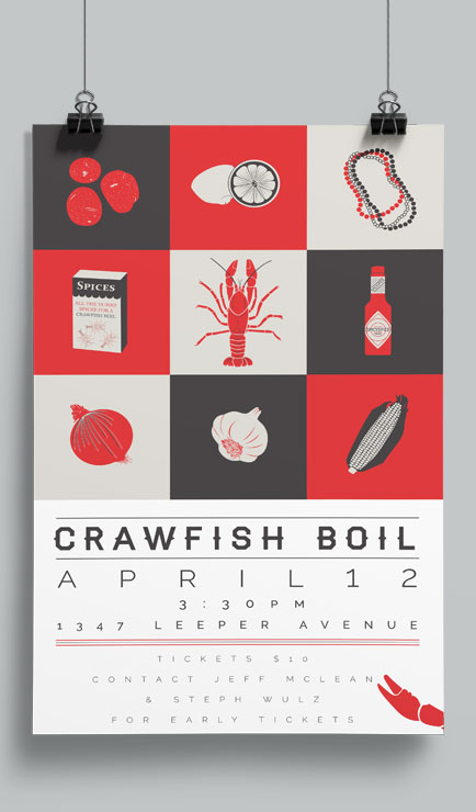 Illustrated poster to advertise the annual Notre Dame Design Department crawfish boil fundraiser and student networking event
